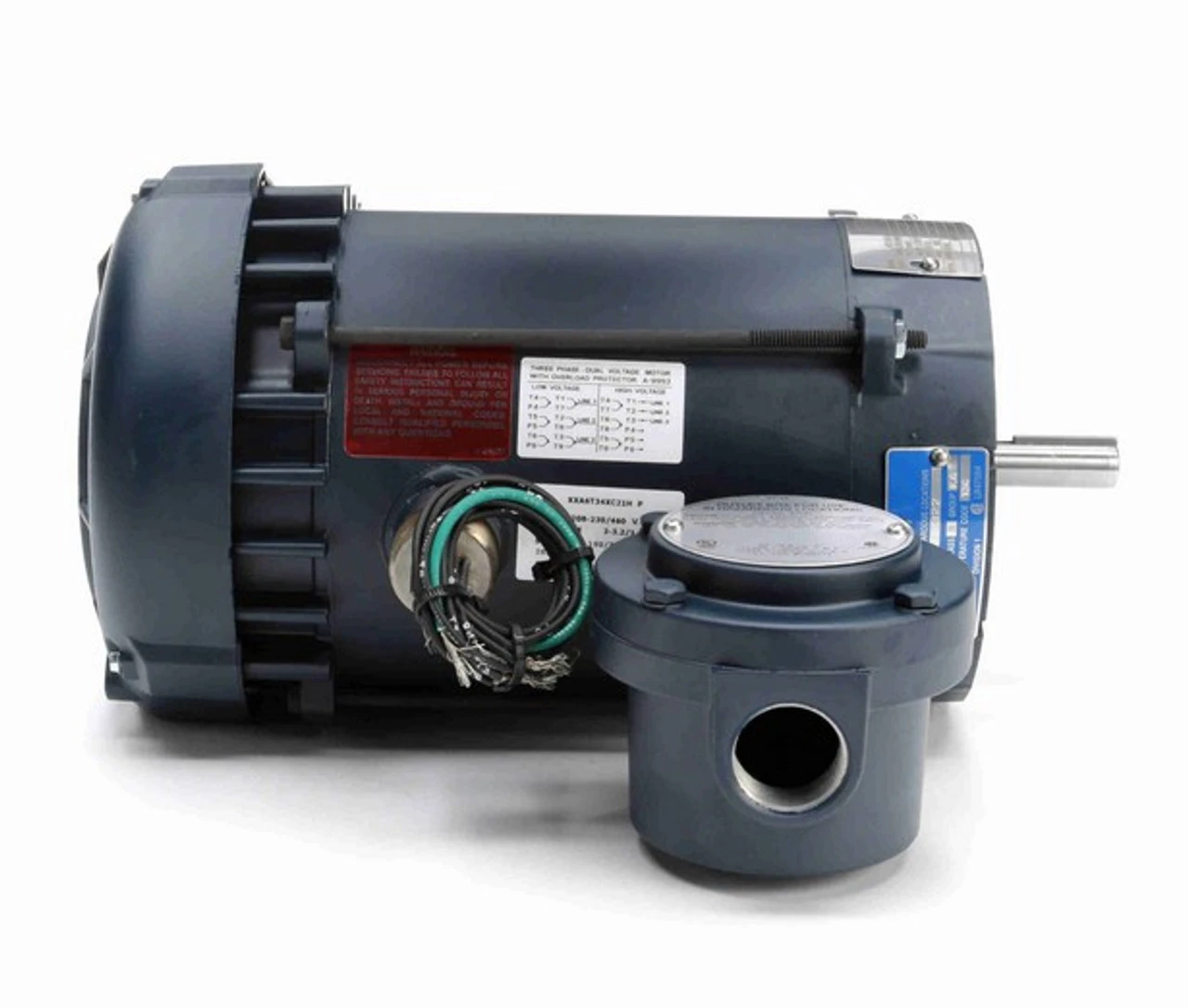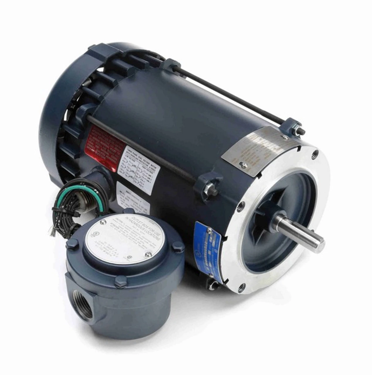 Explosion-Proof motor for use in hazardous environments with a C-face mount. DIV 1 EXP PROOF CL I GR CD CL II GR FG T3C. Bolt holes are 3 3/4″ on center measured across the shaft. Wiring diagram on motor name plate. TENV = Totally Enclosed Non-Ventilated. 111936.00