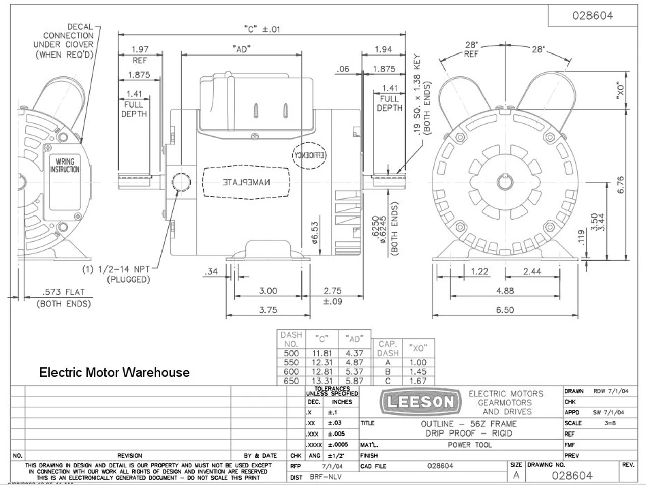 - Overall Motor Length = 12.81 inches, motor name plate shows wiring diagram