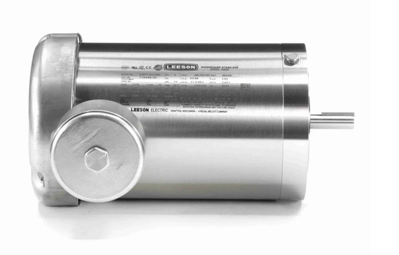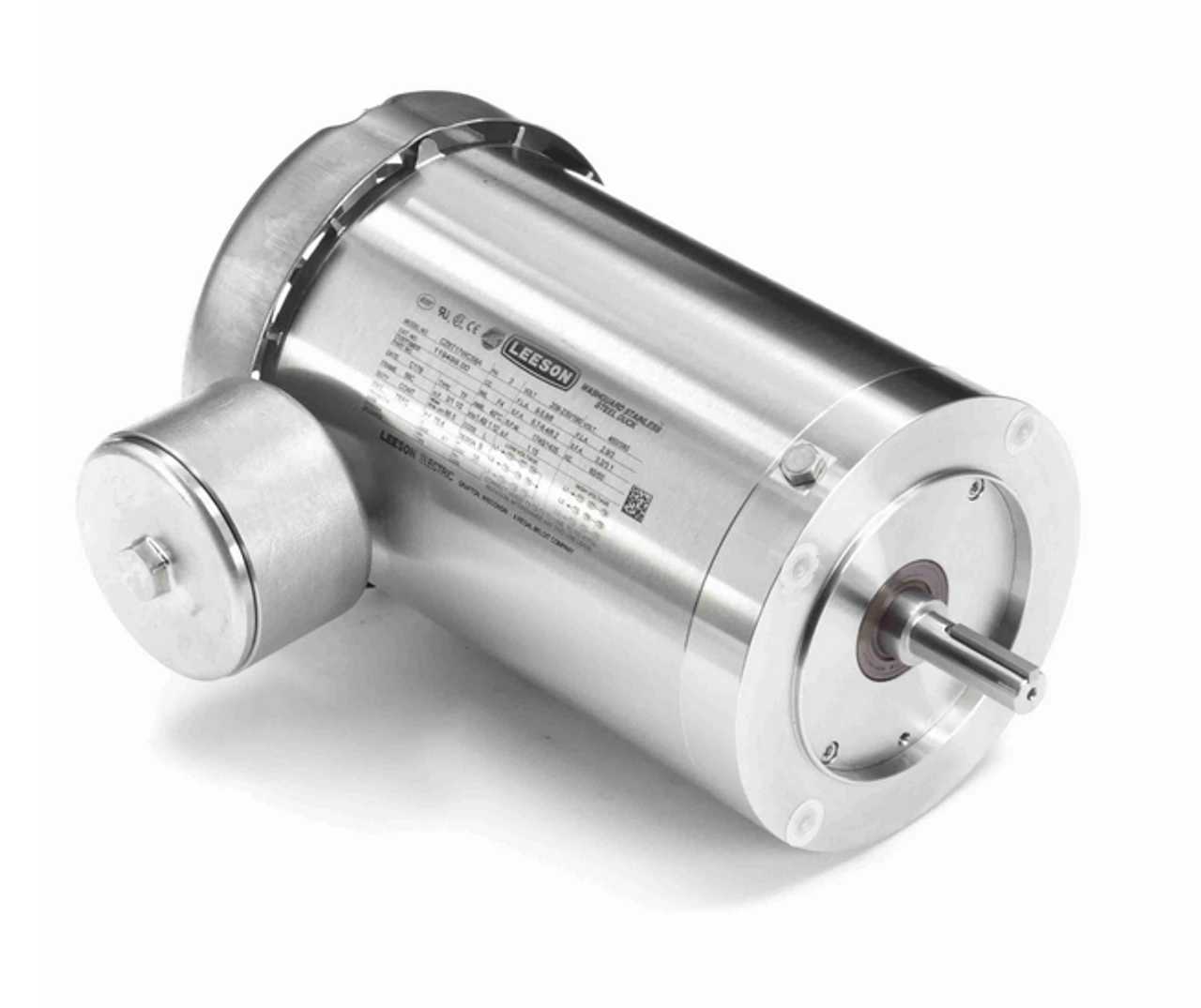 Stainless Steel wash-down motors are use in applications involving challenging caustic environments. This is a three phase electric motor with a C-face mount. Shaft has keyway. Motor has 4 threaded bolt holes on face for mounting a pump or gear head to the motor. Bolt holes are 5 7/8″ on center measured across the shaft. Wiring diagram on motor name plate. TEFC = Totally Enclosed Fan-Cooled. 119499.00