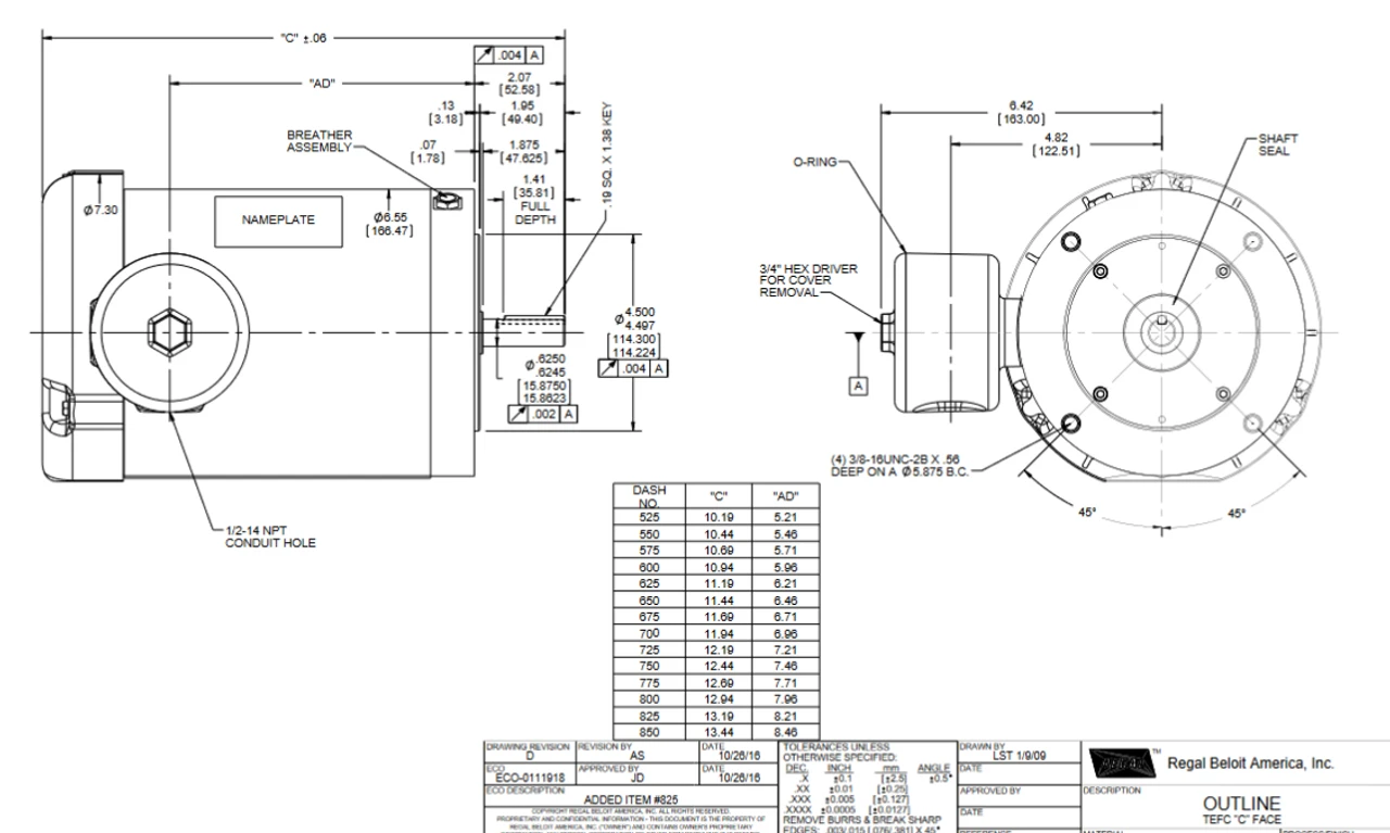 - NEMA 56C frame, C-face, Stainless Steel Keyed Shaft 5/8″ Diameter x 1 7/8″