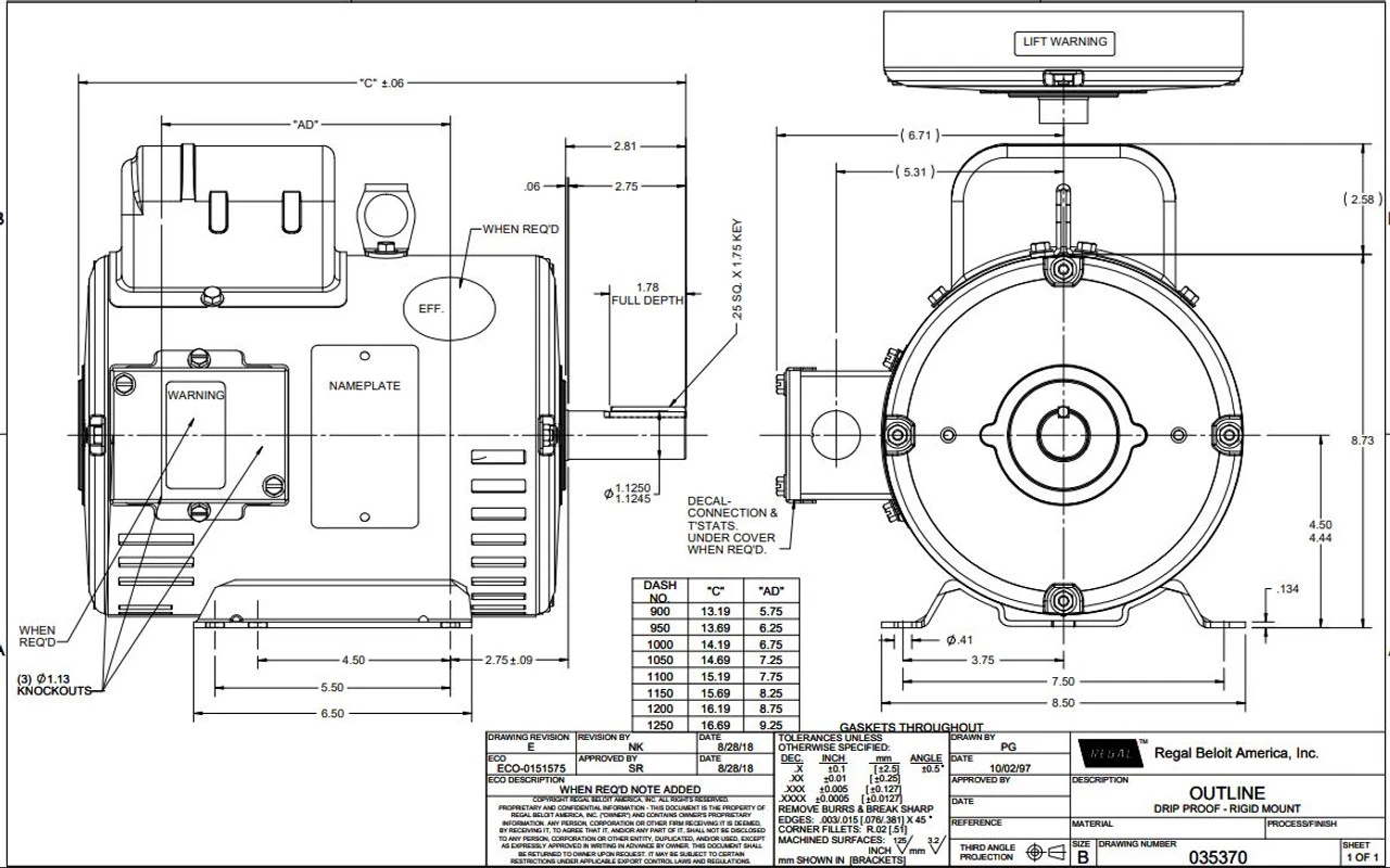 - NEMA 184T Frame – Shaft: 1 1/8″ x 2 3/4″