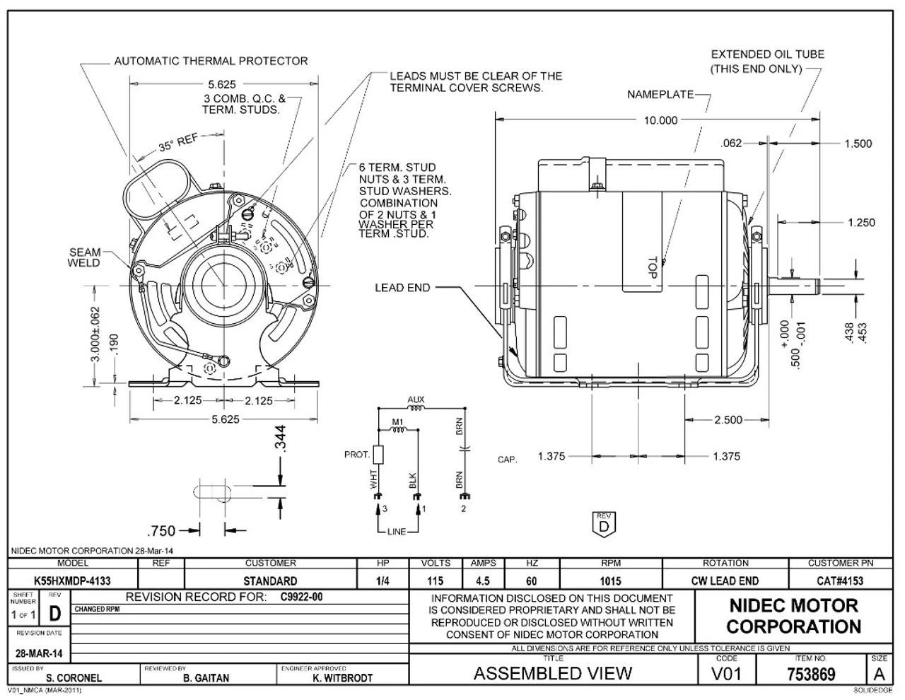 Permanent Split Capacitor Motor. Automatic Overload Protection. Continuous Duty; Totally Enclosed Air Over Enclosure; 40C Ambient Temperature; 60 Hertz. K055MDP4133013B. Suggested after market replacement for McQuay K55HXMDP4133, 057076501 ventilation direct drive blower motor.