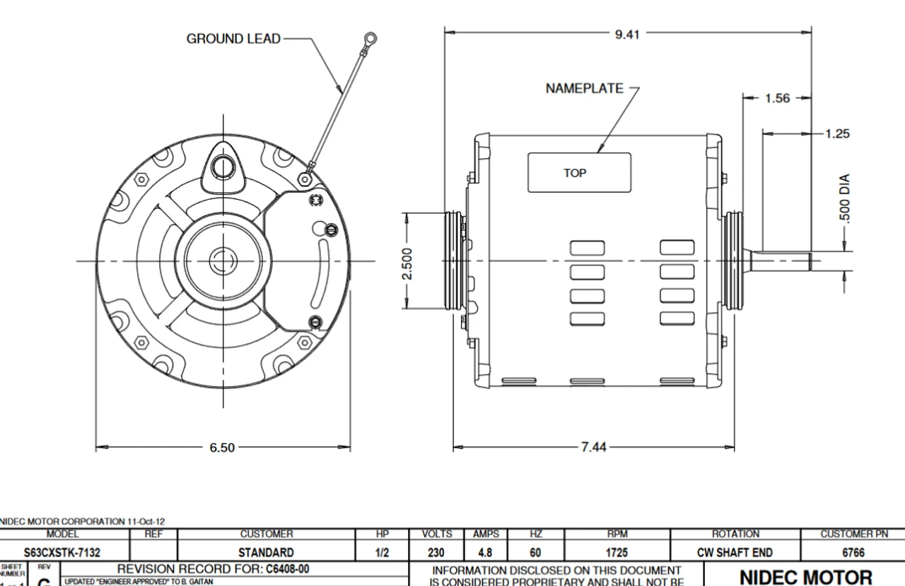 - 5.6″ Dia. Frame, Rolled Steel, Keyed Shaft 1/2″ Diameter x 1 1/2″
