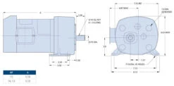 Permanent Magnet motor, Insulation Class B; Finish: Powder-coat gloss black; Brushes: Replaceable; Rear tapped hole in shaft for encoder mount. Gearhead Specifications: Housing – Precision machined die cast aluminum; Shafts – Hardened steel; Gearing: Hardened Steel worm. Forged bronze gear; Lubrication: Lifetime oil bath, sealed and gasketed; Any angle mount; Bearings – Ball and Needle Bearings. Suggested replacement reference for: Dayton 6Z411. Can use with Leeson speed control 174307, 174308.