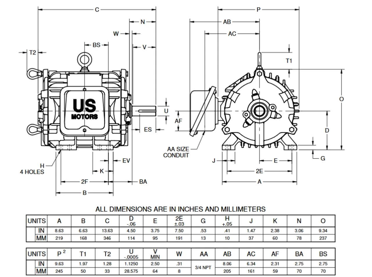 - NEMA 184T Cast Iron frame Keyed Shaft 1 1/8″ Diameter x 2 3/4″