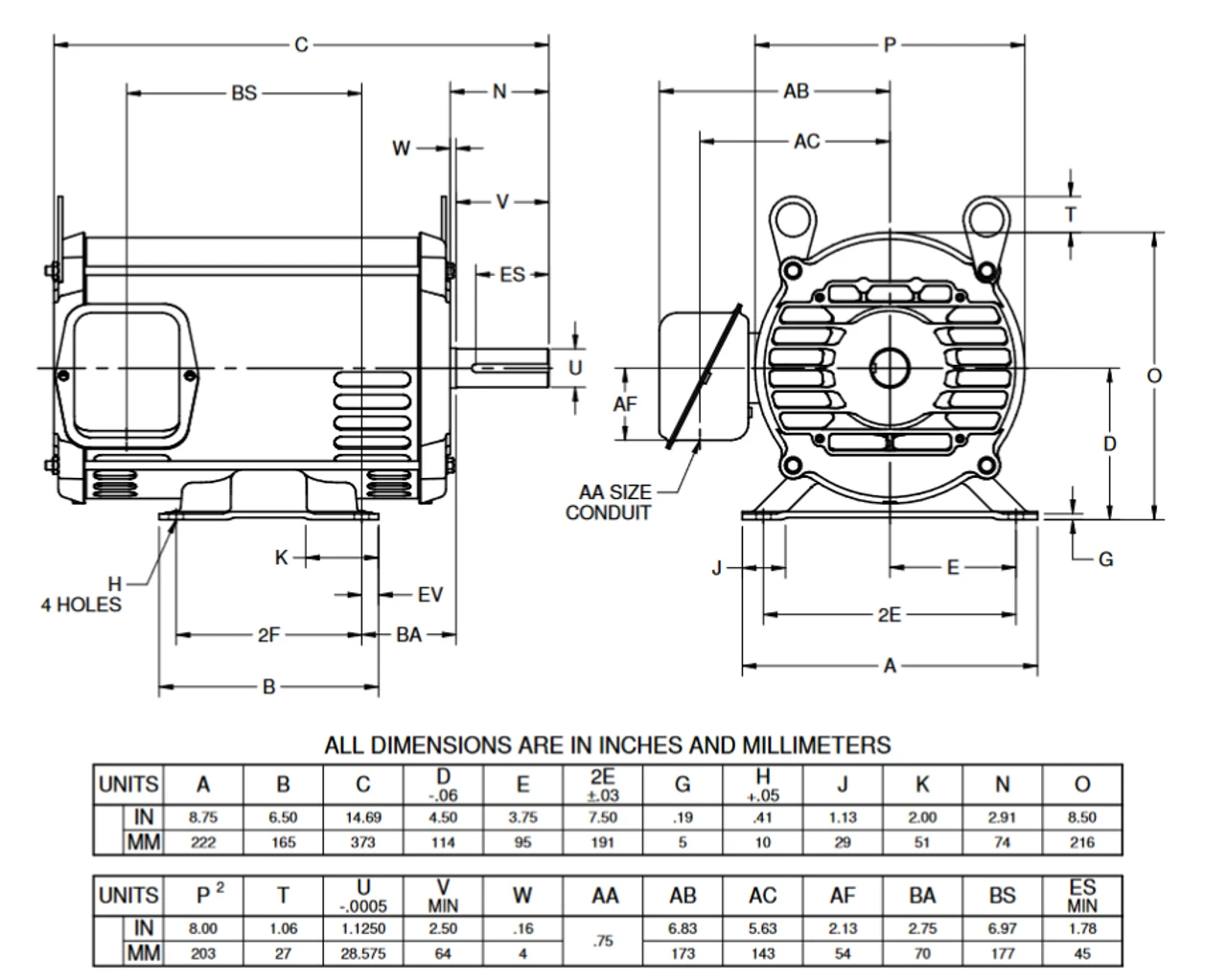 - NEMA 182T Rolled Steel Frame, Keyed Shaft 1 1/8″ Diameter x 2 3/4″
