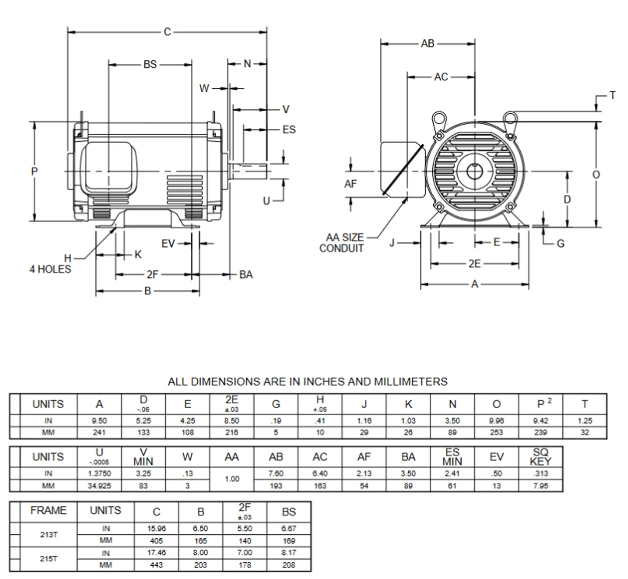 - NEMA 215T Rolled Steel Frame, Keyed Shaft 1 3/8″ Diameter x 3 3/8″