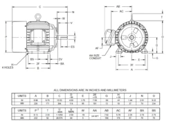 XS34SA2A Nidec 3/4 Hp 1800 RPM 56 Frame (Rigid Base) 208-230/460V TEFC 3-Phase Hazardous Duty Motor