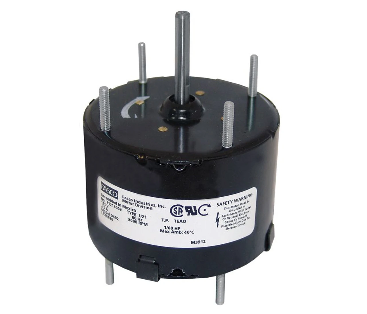 Shaded Pole, Totally Enclosed, Air Over. Extra studs can be cut off if not needed. Shaft can also be shortened with a hack saw if necessary. Shaft bushing is also available, 1/4″ to 5/16″ (part # KIT240). Motor is common to many Kitchen exhaust fans. Suggested replacement reference for: Nutone 26758, JB1C005N, JB1C005, JA1M046, AA1C010F. Dayton 38N563