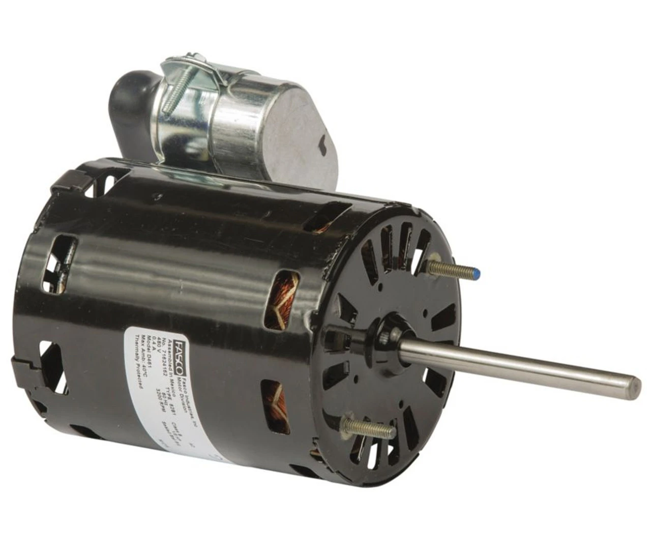 - 1/8 hp 3200 RPM, .32 amps, 480 Volts 60hz.