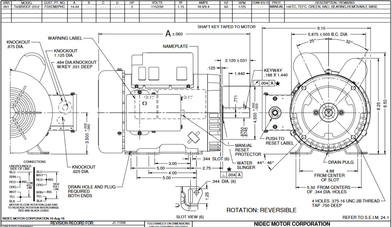 - 145TC Frame, Rolled Steel, Keyed Shaft 7/8″ diameter x 2″ long