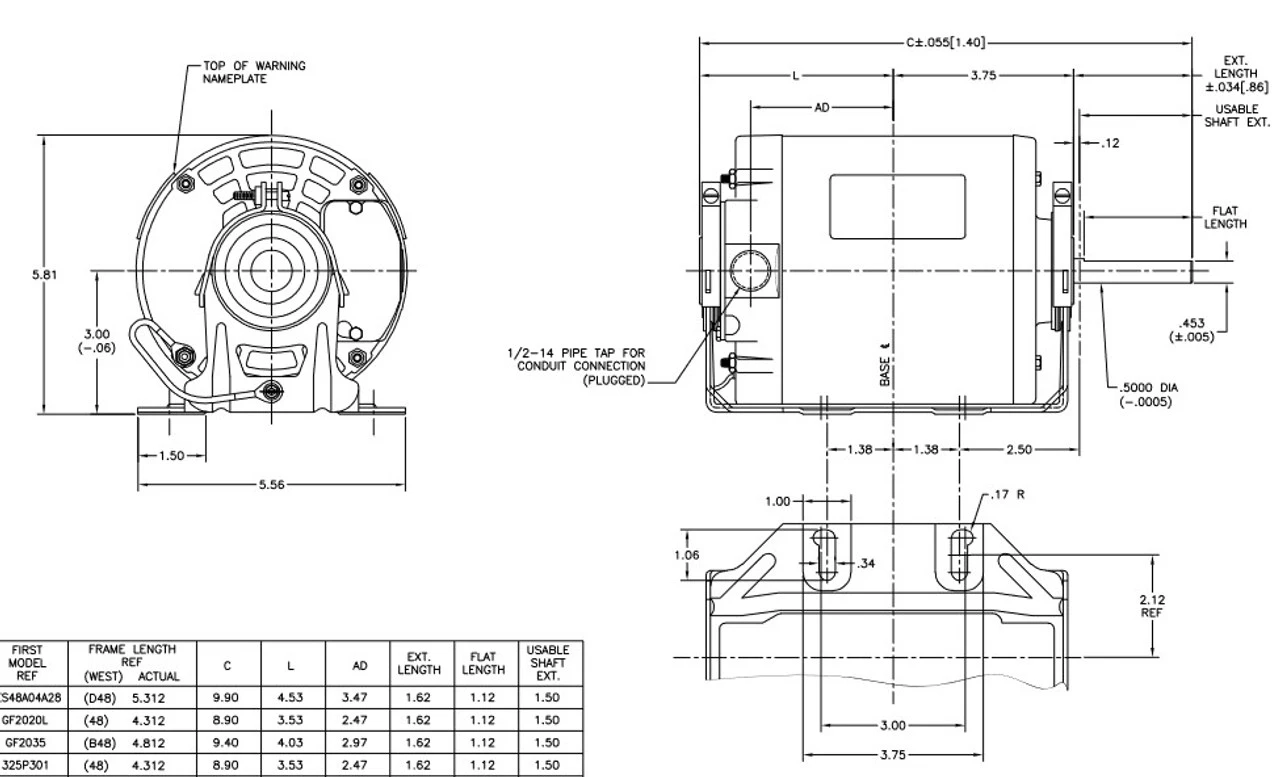 - NEMA 48 Frame Keyed Shaft 1 1/2″ x 1/2″ Diameter, 1 speed