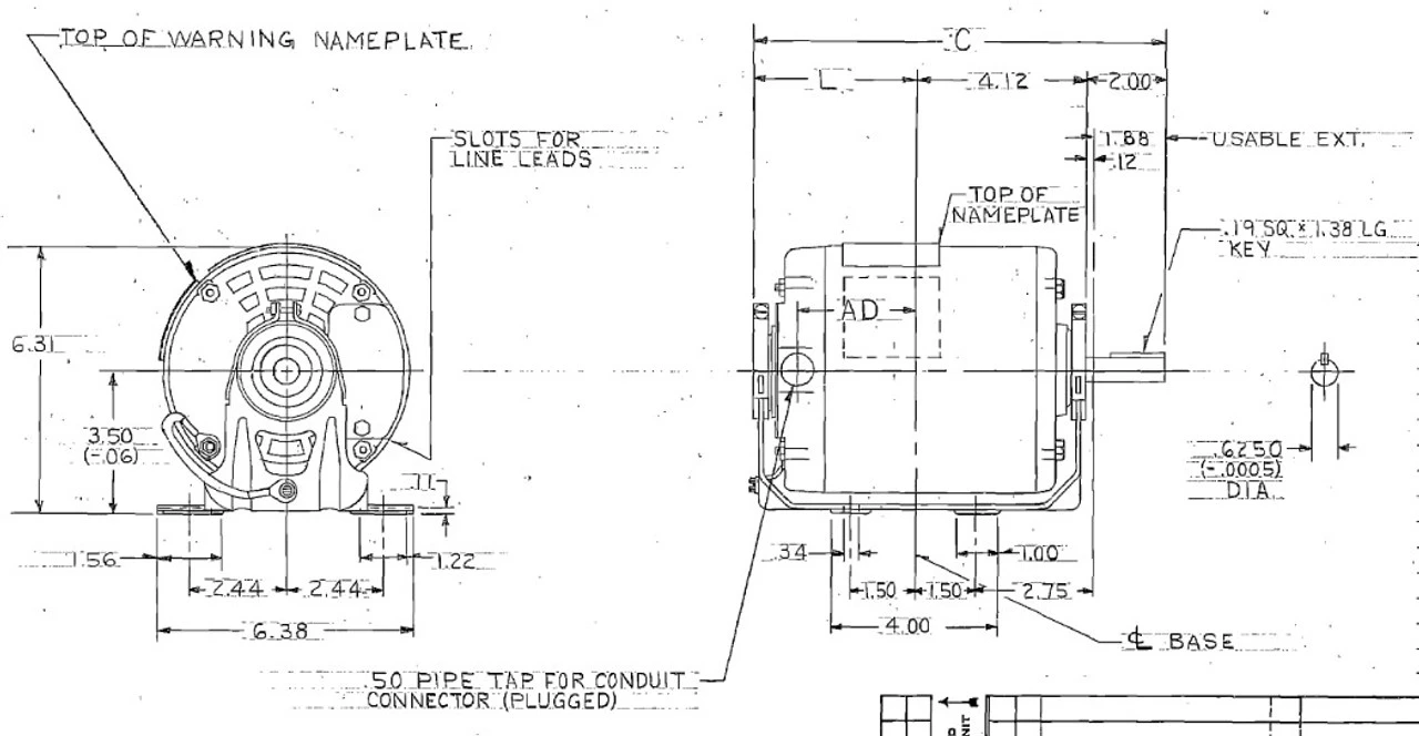 - NEMA 56 Frame Keyed Shaft 1 7/8″ x 5/8″ Diameter, 1 speed