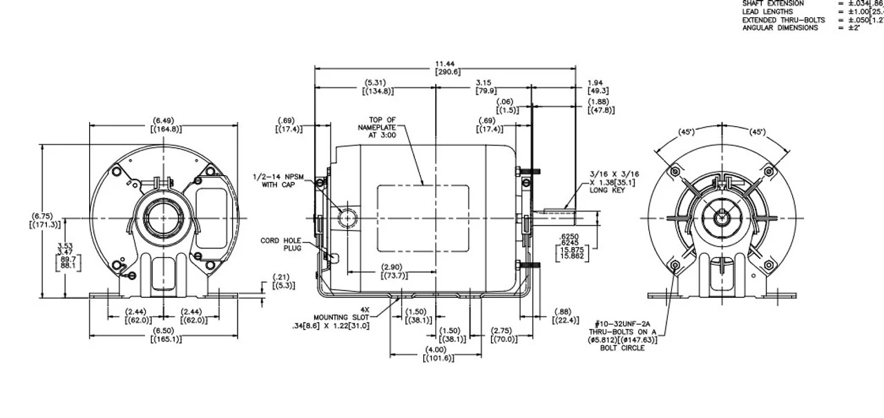 - NEMA 56 Frame Keyed Shaft 1 7/8″ x 5/8″ Diameter, 1 speed