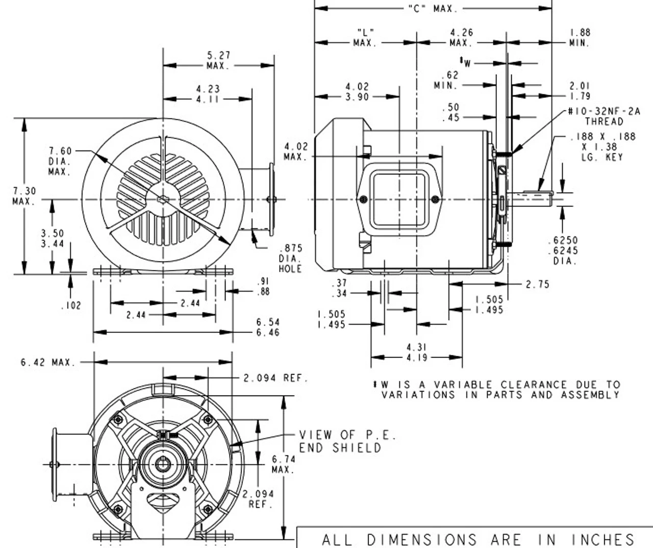 - Resilient Base, Reversible, Ball Bearings, Class B insulation