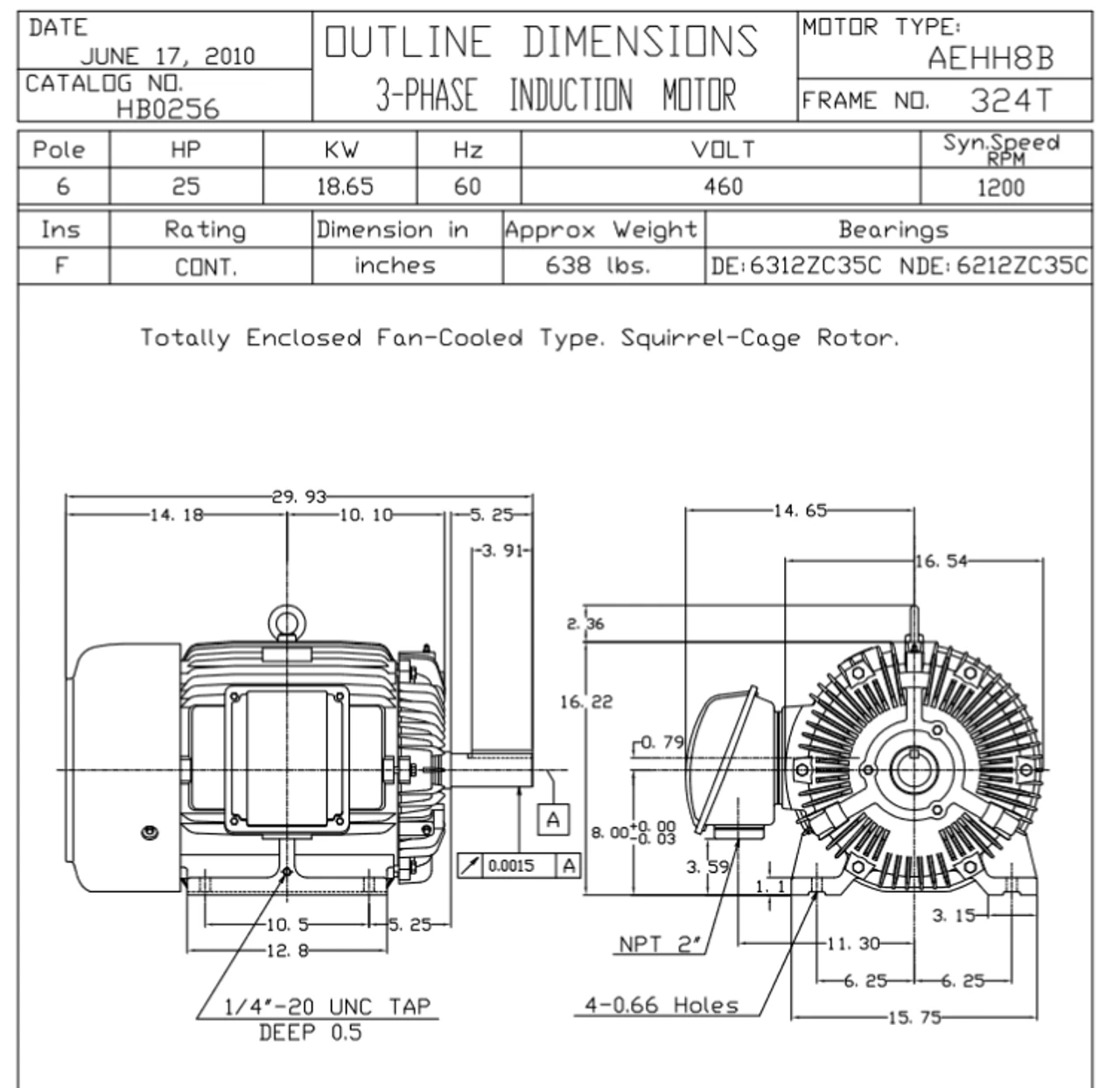 - NEMA 324T Frame, 5 1/4 x 2 1/8″ Dia. Keyed Shaft