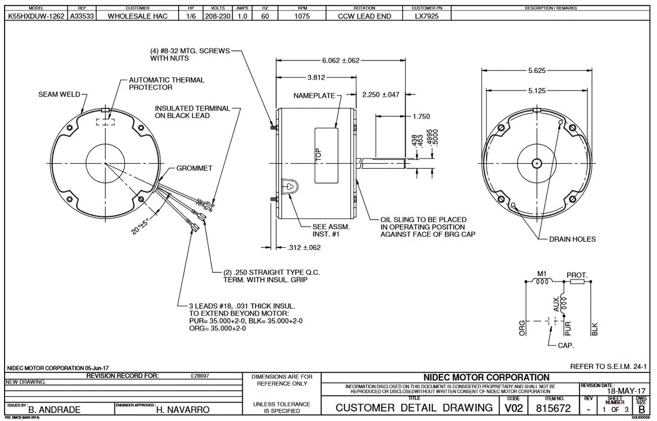 Permanent Split Capacitor Motor. Automatic Overload Protection. Continuous Duty; Totally Enclosed Air Over Enclosure; Class B Insulation; 40C Ambient Temperature. Application Lennox condenser fan motors. K055DUW1262011B, Suggested after market replacement for 68J9701, K55HXDFM-6844, K55HXDUW1262
