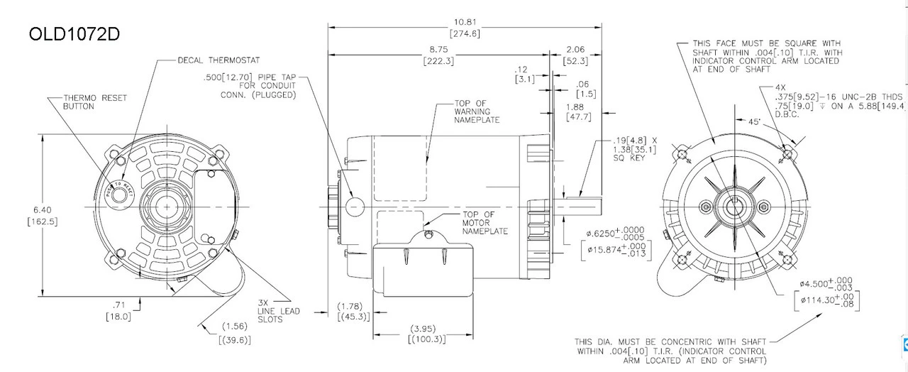 - 3/4 hp 3450 RPM 48CZ, 10.0/5.0 amps, 115/230 Volts 60hz.
