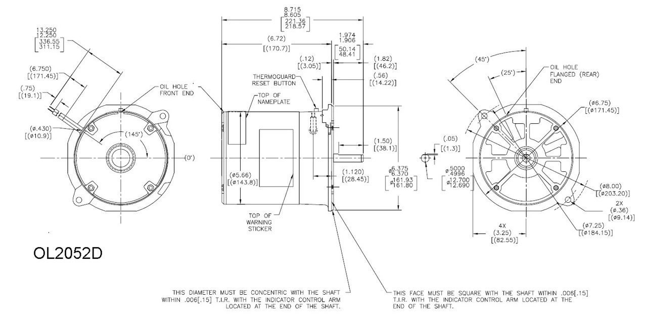 - 1/2 hp 3450 RPM 48N, 8.2/4.1 amps, 115/230 Volts 50/60hz.