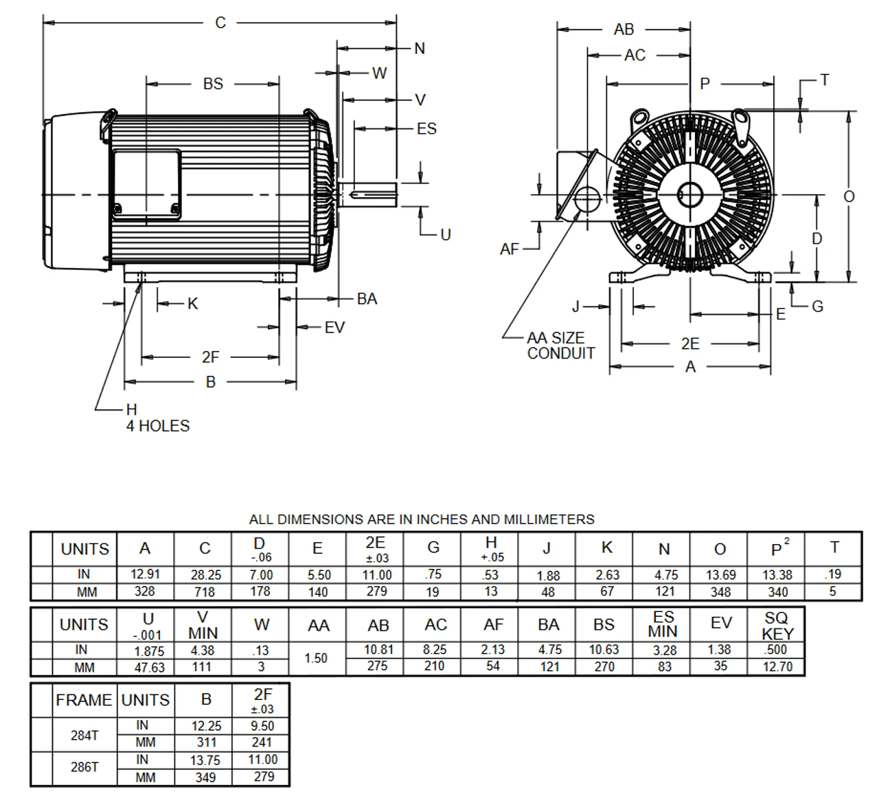- NEMA 284T frame Keyed Shaft 1 7/8″ Diameter x 4 5/8″