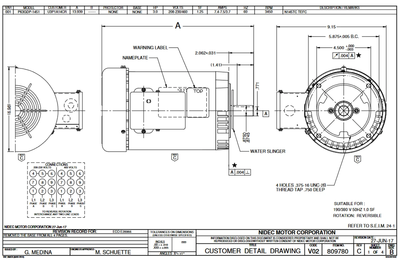 General purpose C- Face motor can be used for many applications requiring a three phase electric motor. Wiring diagram on motor name plate. TEFC = Totally Enclosed Fan cooled. P063GDP1451015B