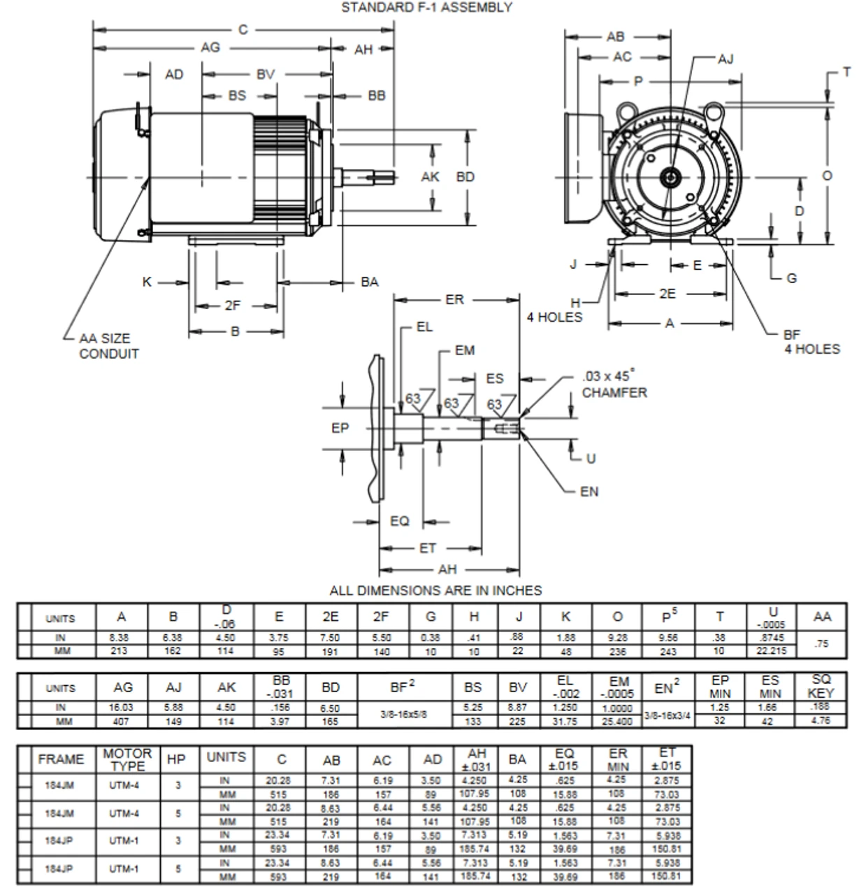 - NEMA 184JM Rolled Steel Frame, JM steel shaft