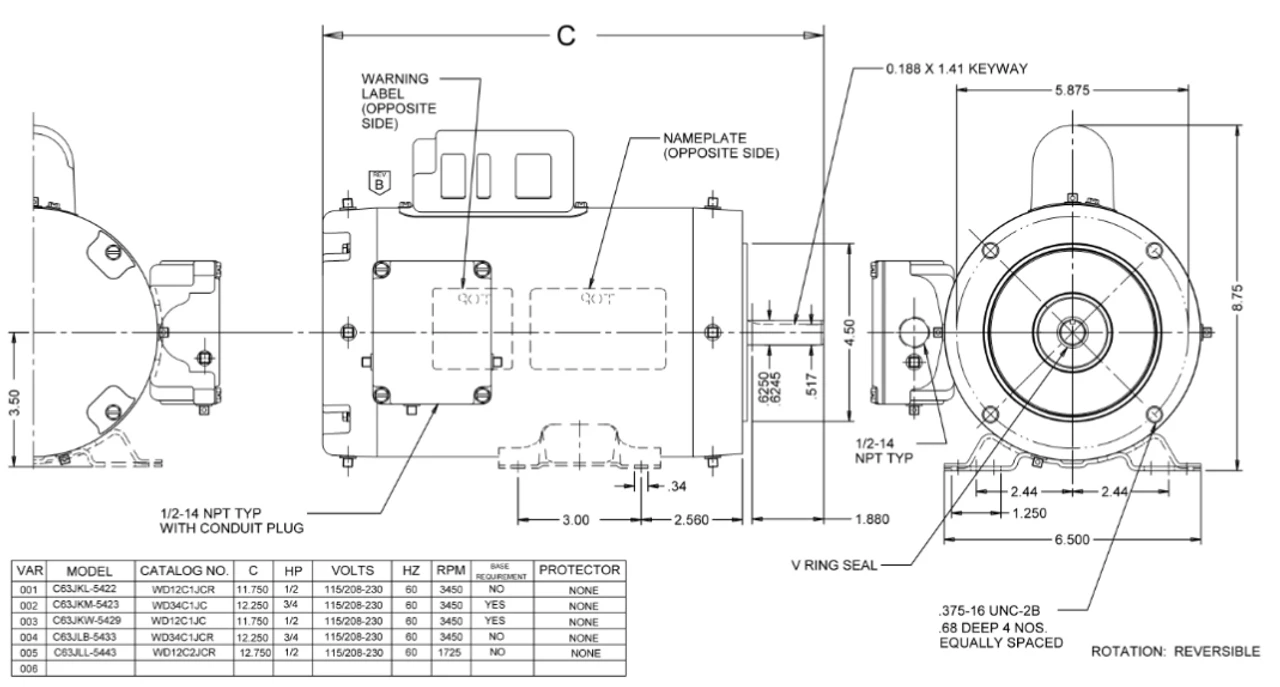 - NEMA 56HC Rolled Steel Frame, Keyed Shaft 5/8″ Diameter x 1 7/8″