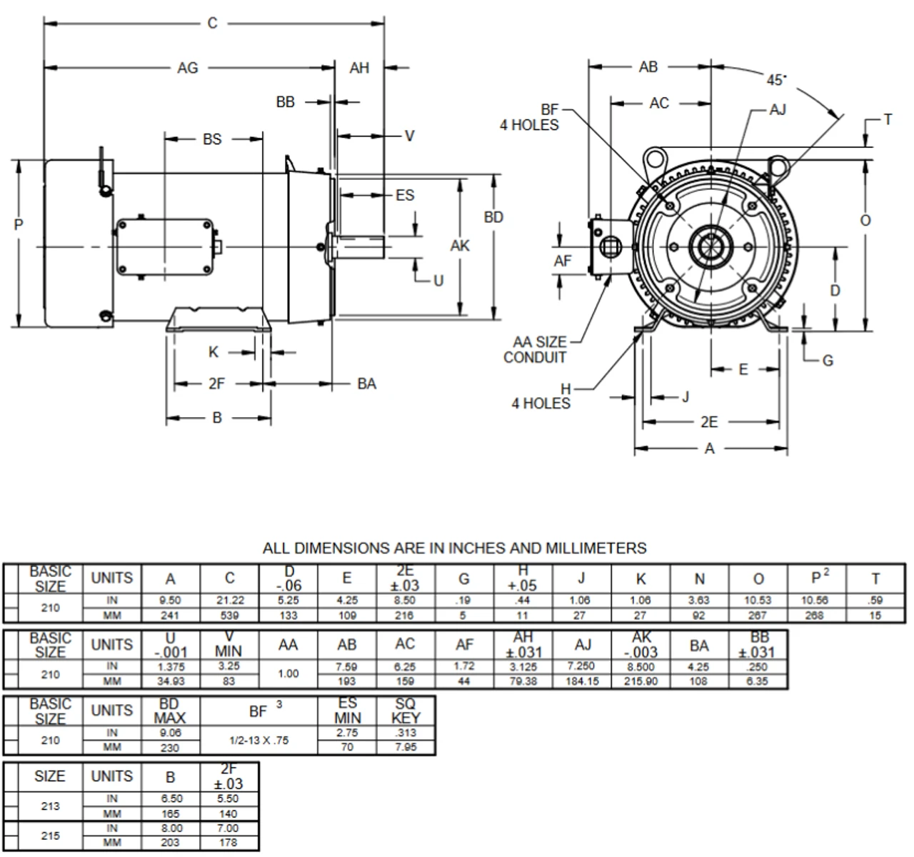 - NEMA 213TC Rolled Steel Frame, Keyed Shaft 5/8″ Diameter x 1 7/8″