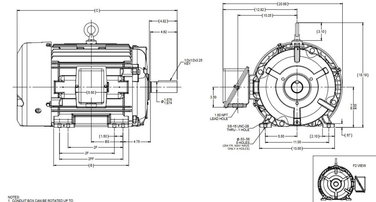 - NEMA 284T Frame, Shaft 4 5/8″ x 1 7/8″ Diameter, 2 speed