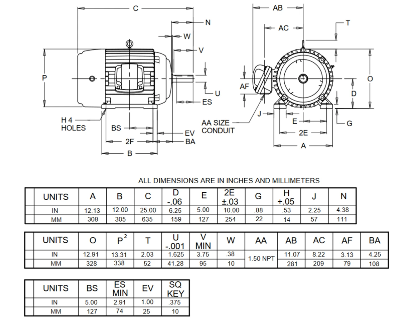 - NEMA 256T Cast Iron frame Keyed Shaft 1 5/8″ Diameter x 4″