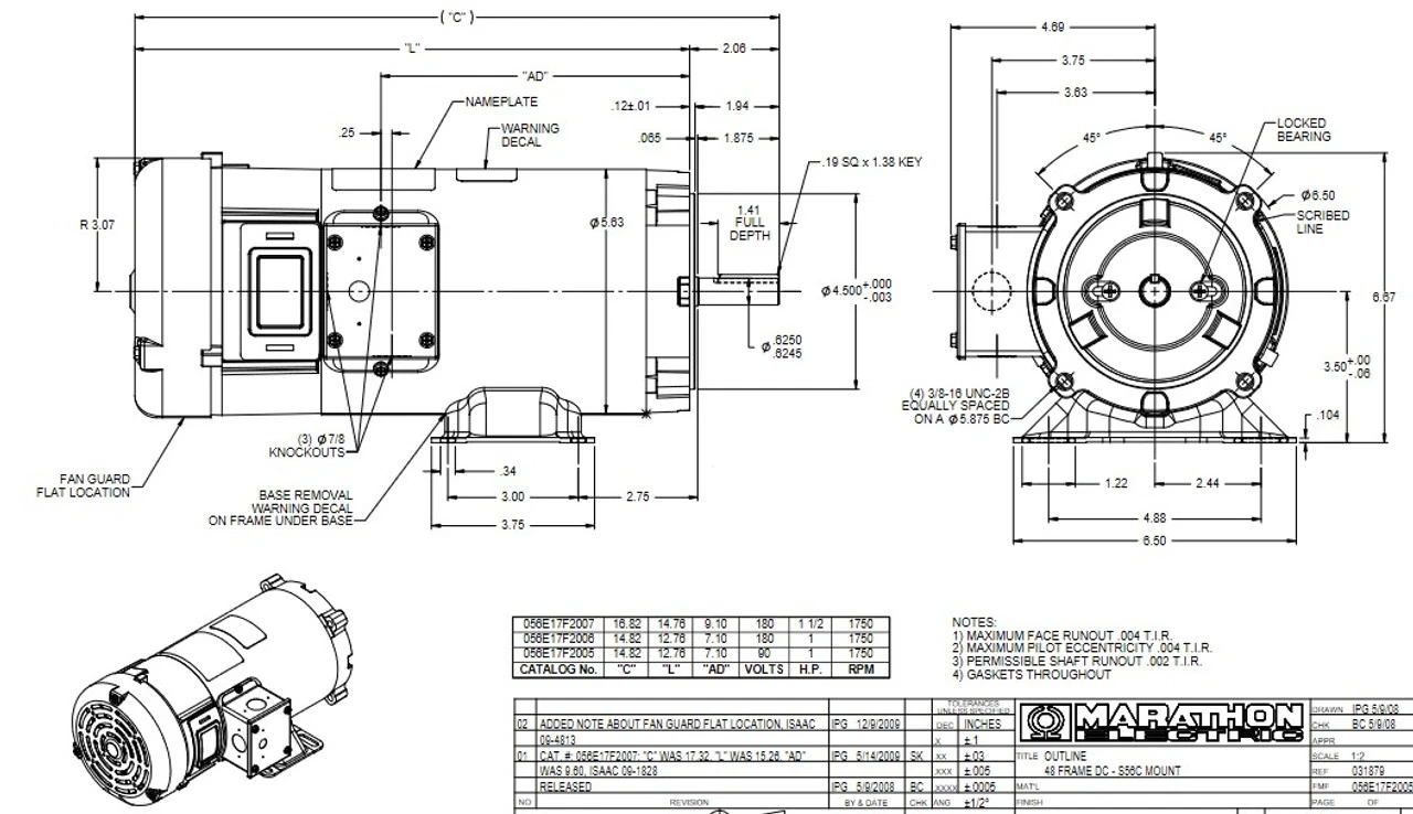 - Rigid Base, CW rotation looking at lead end, Ball Bearings, Class F Insulation